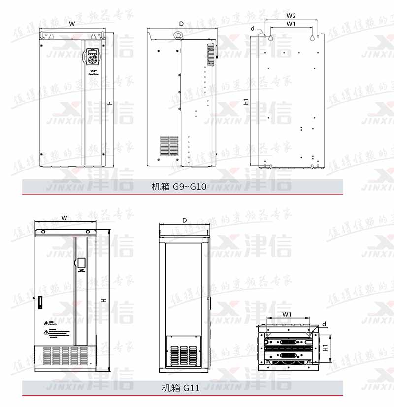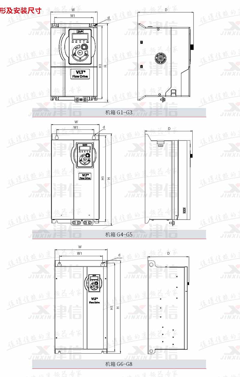 | 機箱型號 | 適配的功率範圍 (kW) | 外形尺寸 (mm) | ||||||